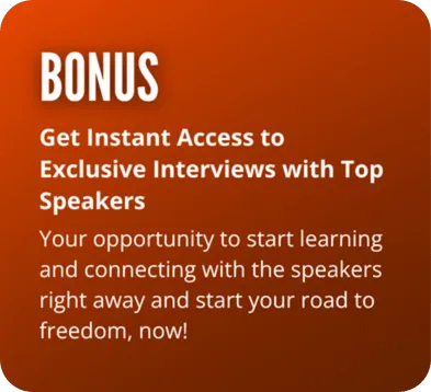Register now and get FREE Instant Access to Exclusive Interviews with Top Speakers and start learning and connecting with the speakers right away to start your road to freedom, now!