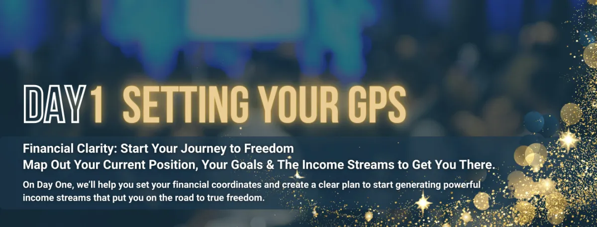 We’ll help you map out your current financial position, crystalize your goals, and identify the income streams that will drive you forward. By the end of Day One, you’ll have your financial coordinates locked in and a clear path charted toward real freedom.