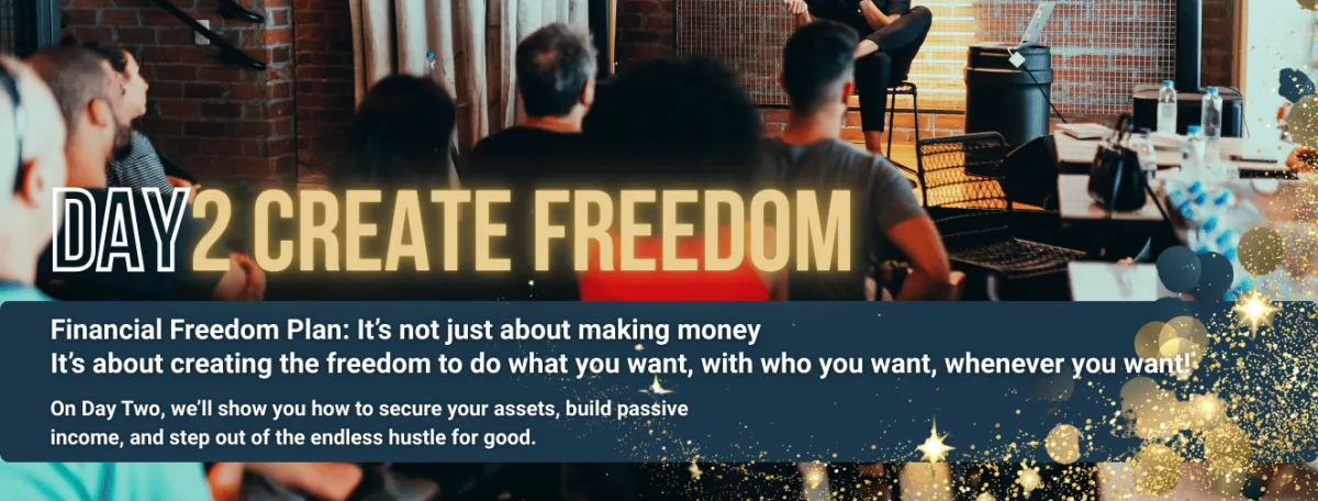 Day Two is your chance to learn from millionaire investors, get real strategies to start making money fast, sidestep the traps that hold most people back, and walk away with an action plan to build wealth immediately. You’ll leave ready to take your first powerful steps toward true financial freedom.