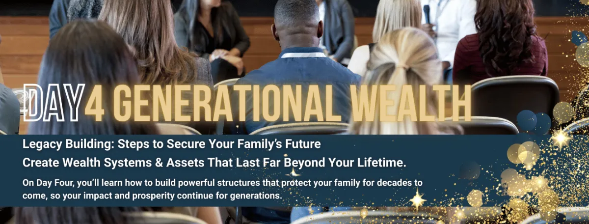 On Day Four, you’ll learn how to build robust structures that safeguard your family for decades to come. Discover how to establish assets and systems that carry your impact and prosperity forward for generations.