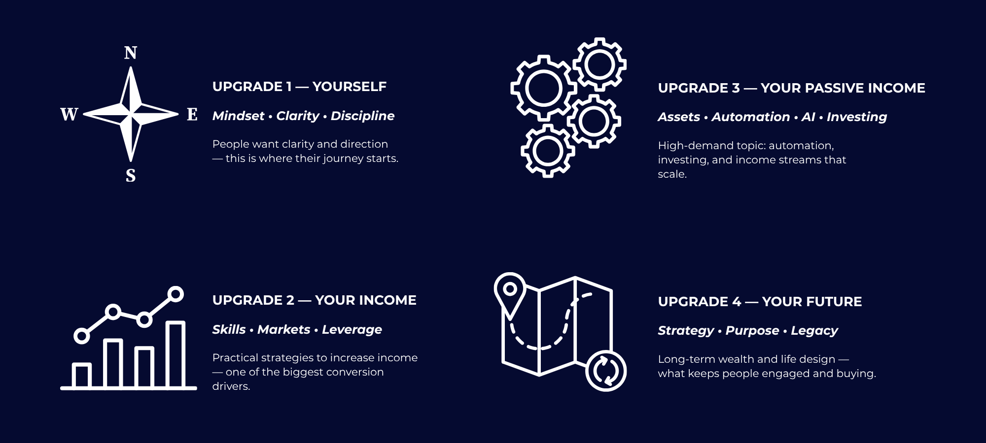 Day 3 taps into what people are actively searching for right now — passive income, AI, automation, and scalable online growth.